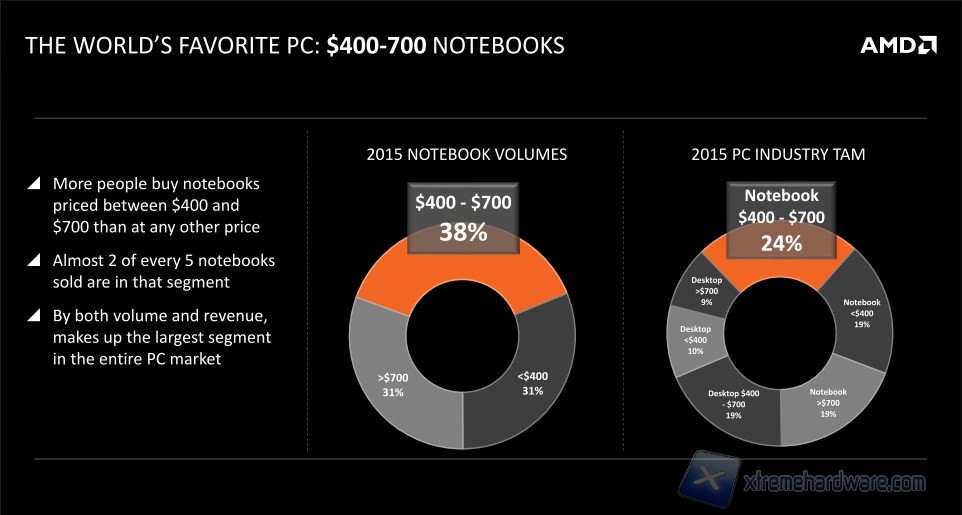 Secondo quanto riportato da AMD il 38% dei notebook che saranno venduti nel 2015 sarà un prodotto avente un consto compreso tra i 400 ed i 700 dollari.
