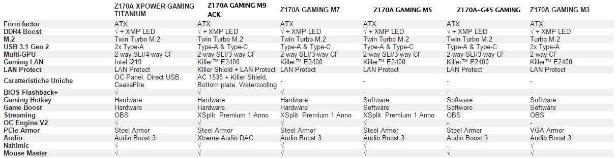 A seguire la linea completa di prodotti MSI con il nuovo chipset Z170 di Intel