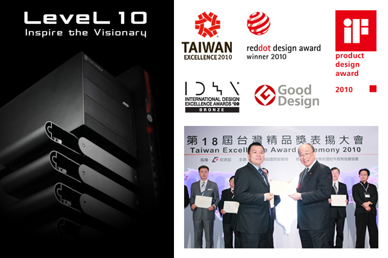 Thermaltake e orgogliosa di annunciare che il Level 10 Extreme Gaming Station, il Case realizzato in collaborazione con BMW Group Designworks USA, ha vinto anche il prestigioso premio “REDDOT DESIGN 2010” cosi come il celebre “Taiwan Excellence Award 2010”. Al Level 10 erano gia stati assegnati questi riconoscimenti: “IDEA Bronze Award R 2009” , l' ”iF Product Design Award”, ed il “G-Mark Design Award 2009”.