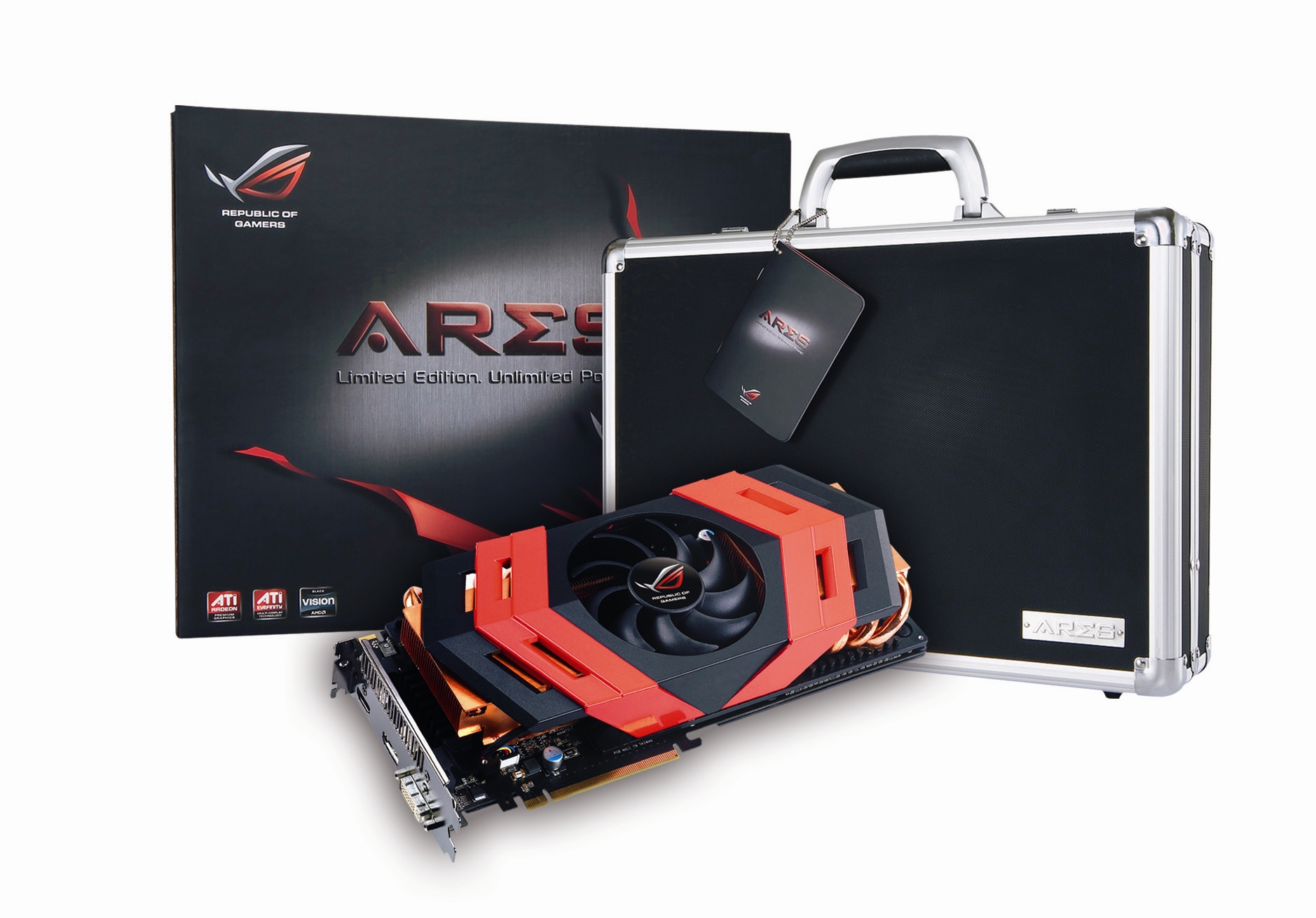 Lo spirito pionieristico delle soluzioni ROG caratterizza anche la nuova scheda video ASUS, che è equipaggiata con due GPU Radeon HD5870 funzionanti a 850 MHz, ottimizzati ed in grado di regalare incrementi prestazionali fino al 32% rispetto alle schede “reference”.Il design “alieno” della ASUS ARES, cela muscoli molto potenti. La nuova scheda video firmata ASUS è dotata, infatti, di 3200 stream processor e 4 GB di memoria GDDR5 a 1,2 GHz. In pratica offre tutta la potenza che possono sognare gamer ed appassionati del genere, regalando elevatissime performance con le applicazioni più esigenti in termini di risorse e assicurando al contempo massima prontezza per i giochi e le funzionalità del futuro. ASUS ARES rappresenta, inoltre, una soluzione perfetta anche per gli appassionati di overclocking, che potranno così registrare incredibili risultati ai benchmark, grazie alle enormi potenzialità di tuning messe a disposizione dalla scheda.