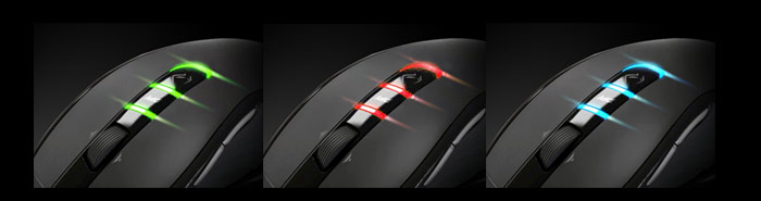 Veniamo adesso all' M6900 Precision, modello che supporta fino a 3200dpi, mediante tuttavia un sensore di tipo ottico e non laser. 30G la massima accelerazione consentita, 7 tasti di cui 5 programmabili, l'ergonomia è la stessa del 6980, tuttavia la colorazione dei led non è personalizzabile, è solamente rossa.Anche in questo caso i 3 led luminosi indicano il livello di dpi impostato (800, 1600, 2000 dpi di default, personalizzabili via software con valori da 400 a 3200dpi), livello modificabile mediante on-th-fly con i tasti posizionati nella parte superiore.
