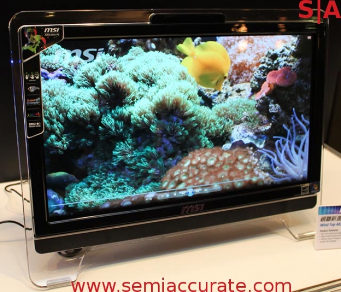 Il primo è caratterizzato da un schermo 16:9 touch-screen da 20 pollici (la risoluzione non è nota, ma si suppone possa essere 1920x1080 o 1600x900) ed è accompagnato da una APU E-350, modello dual core a 1,6 GHz e comparto grafico  AMD Radeon HD6310 con 80 stream processor. Msi ha integrato inoltre 2 porte USB 3.0 sul lato sinistro del dispositivo; oltre a queste sono presenti 4 porte USB 2.0, una coppia di jack audio, porta ethernet, porta HDMI, lettore di memorie multi formato e un driver ottico. A completare il quadro multimediale una coppia di speaker certificati SRS e una web cam.