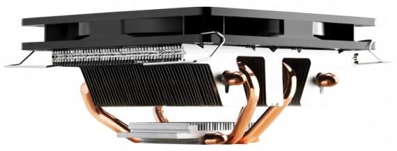 Il Gemini II M4 è un dissipatore con sviluppo orizzontale, ideale per HTPC grazie al suo basso profilo. E' dotato di 4 heatpipe da 6mm di diametro a diretto contatto con la CPU, posizionate da entrambi i lati della struttura in modo da rendere più robusto il dissipatore. Grazie all'utilizzo di una ventola slim da soli 15mm di spessore, il dissipatore è alto soltanto 59mm, quindi ideale per tutti quei case di dimensioni molto ridotte. Il diametro della ventola è invece di 120mm in modo da raffreddare non soltanto la struttura dissipante, ma anche i componenti del PC nelle immediate vicinanze del socket. Con un regime di rotazione variabile tra 500 e 1600 RPM, regolabile tramite tecnologia PWM, riesce a generare un flusso compreso tra 17.4 e 58.4 CFM, con una rumorosità variabile tra 8dBA e 30 dBA.