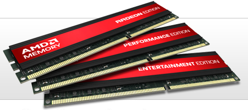 Come già annunciato ad inizio agosto in questa news, AMD sta producendo banchi di memoria RAM DDR3.In collaborazione con Patriot Memory e VisionTek, AMD si appresta ad introdurre sul mercato banchi di memoria con PCB nero con un dissipatore dal basso profilo in colore nero e rosso. Sullo stesso, verrà riportato il nome della serie appartenente; al momento l'offerta comprende la Radeon Edition, la Performance Edition e l'Entertainment Edition.