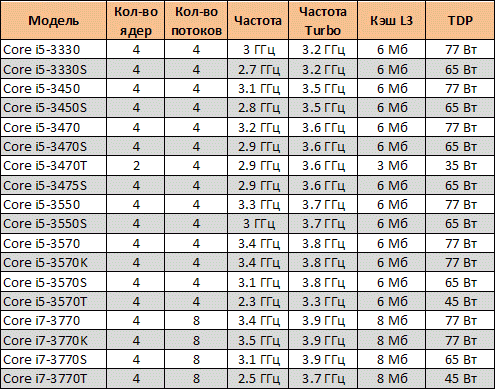 Line-up per i processori Intel Ivy Bridge per il mercato desktop