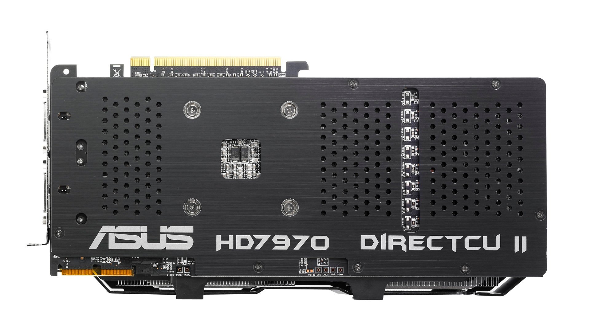 Il costruttore taiwanese mostra la sua versione custom della scheda video AMD Radeon HD 7970.Come già visto in altre soluzioni marchiate DirectCU, il sistema dissipativo è di generose dimensioni, occupando infatti ben tre slot, ed integra numerose features atte a rendere questa scheda video particolarmente estrema.Il rivestimento è dotato di due ventole da 10 cm che vanno a raffreddare l'intero PCB della scheda. Al disotto si trova il sistema dissipativo composto da 6 heatpipes in rame a diretto contatto con la GPU che si distendono in due sezioni costituite da alette in alluminio. L'intero sistema assicura un raffreddamento migliore del 20% rispetto alla versione reference, mantenendo inoltre un impatto acustico inferiore di 14 dB.