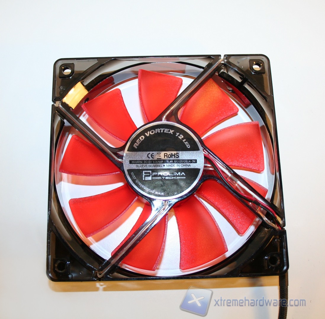 Abbiamo già recensito la nuova serie Prolimatech, che consiste in tre ventole da 120mm e ben 4 da 140mm, entrambe sempre con 25mm di spessore; la linea produttiva “Vortex” è interessante in quanto è finalizzata ad un pubblico molto esigente in termini prestazionali, non a caso il valore di targa della serie da 120mm è ben 72.67CFM, al massimo del regime di rotazione. Per quanto riguarda le 140mm invece il valore sale ad 87CFM.