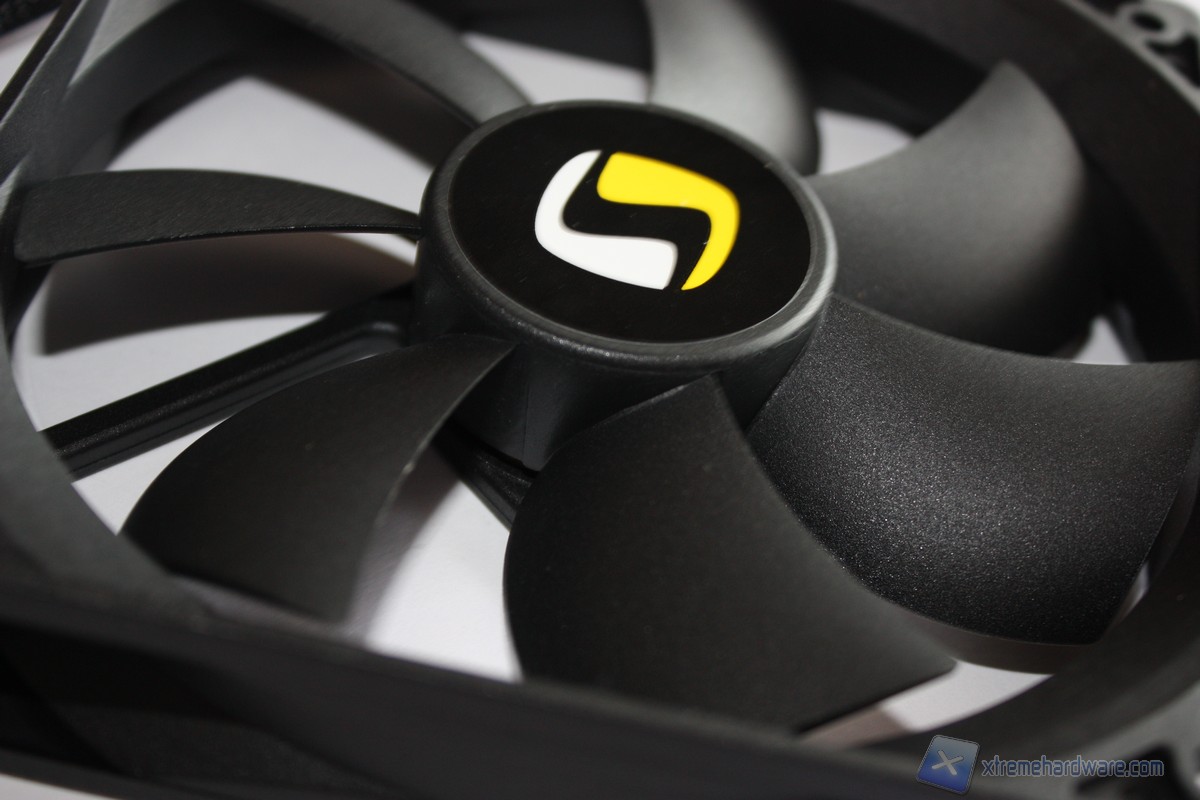 Detto questo passiamo all’analisi delle ventole. La ventola in dotazione al Fera 2 è come detto da 120 millimetri ed appartiene alla tipologia PWM. La colorazione è la classica nera per l’intero corpo. LIn connettore PWM a 4 pin permetterà di variare la velocità di rotazione, in maniera automatica, in base al carico della CPU. Il cavo del connettore PWM è rivestito in treccia di tessuto di colore nero. Il disegno è classico e non presenta variazioni da ventole simili. Stesso discorso vale per le pale che non hanno particolari forme. Il discorso vale ovviamente per la ventola in bundle e quella aggiuntiva Zephyr.