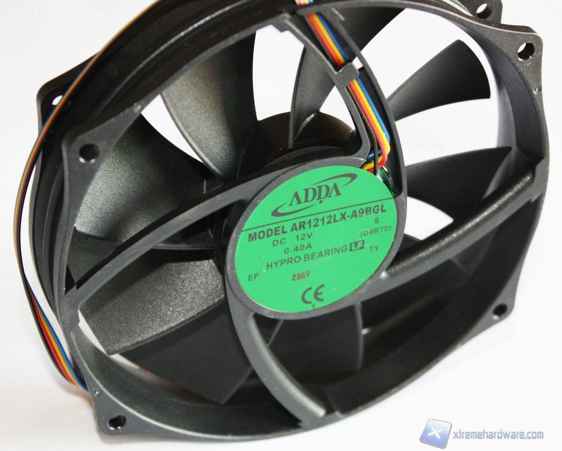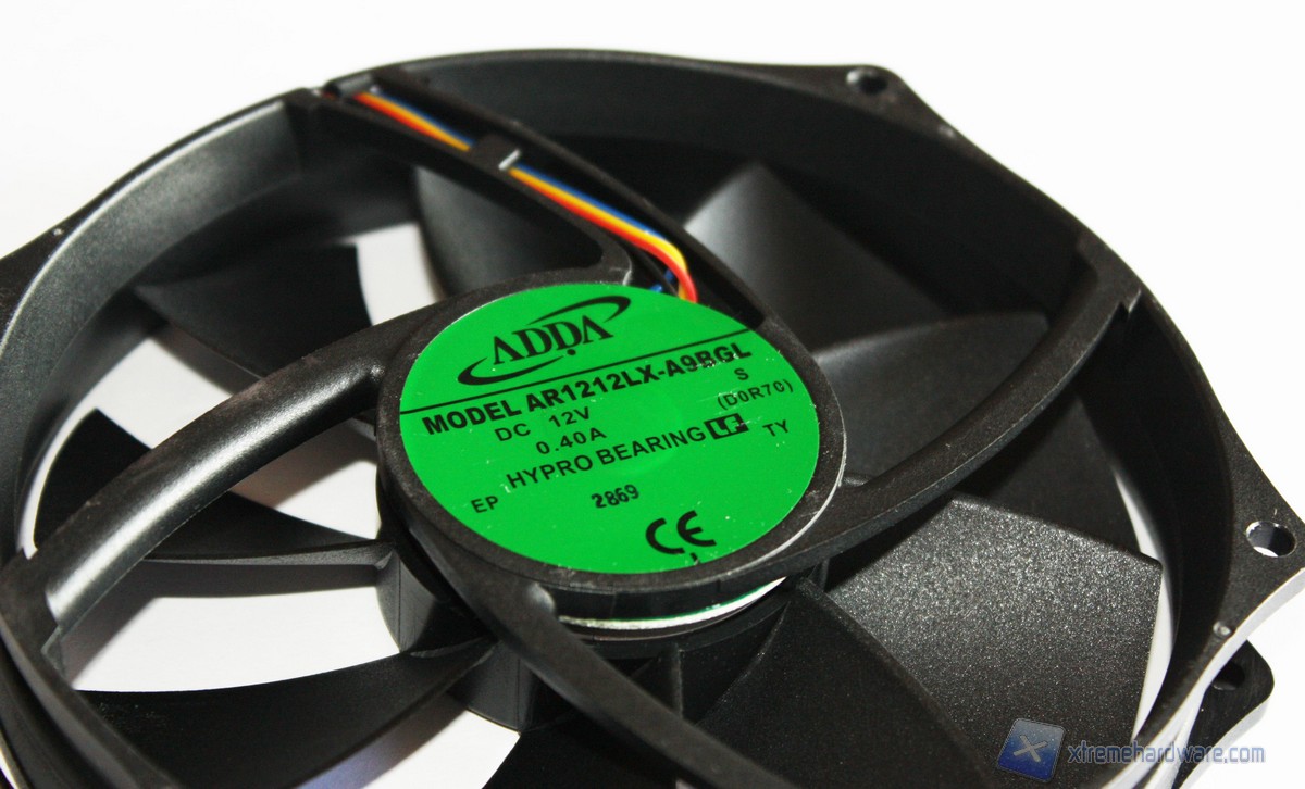 Abbiamo già detto che in dotazione al Trinity è presente una ventola da 130mm PWM. Questa è prodotta da ADDA, modello AR1212LX-A9BGL, molto indicata per il dissipatore in questione. La ventola impiegata da Thermolab per il Trinity è unica come dimensione, non ci sono altri modelli del brand che montano ventole da 130 millimetri. Questo diametro è poco diffuso anche tra altri brand, ma si sposa perfettamente con le dimensioni compatte del Trinity.