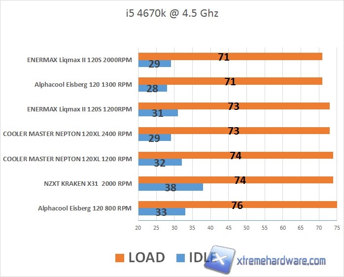 L’Enermax Liqmax II 120S grazie anche alle prestanti ventole in dotazione ha ottenuto validi risultati a fronte di un radiatore con uno spessore classico. Per quanto riguarda l’Enermax Liqmax II 120S sono stati utilizzati dunque due profili (grazie anche ai tre possibili step presenti sulle ventole), che vedrete a seguire, sfruttando la configurazione Push/Pull vista la disponibilità di due ventole.