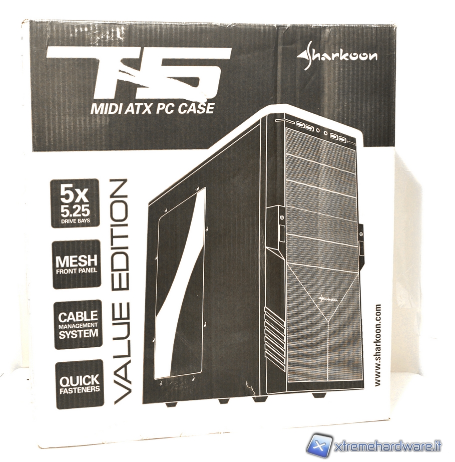 The new T5 is shipped in a white and black box. On the right there is an image that shows the cabinet in its front and side, while in the left side of the box there are explained 4 characteristics: