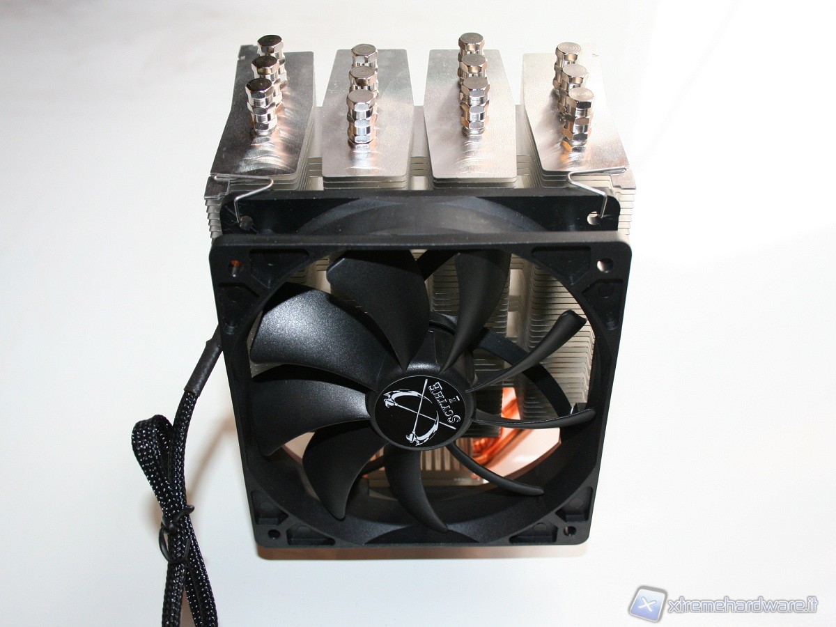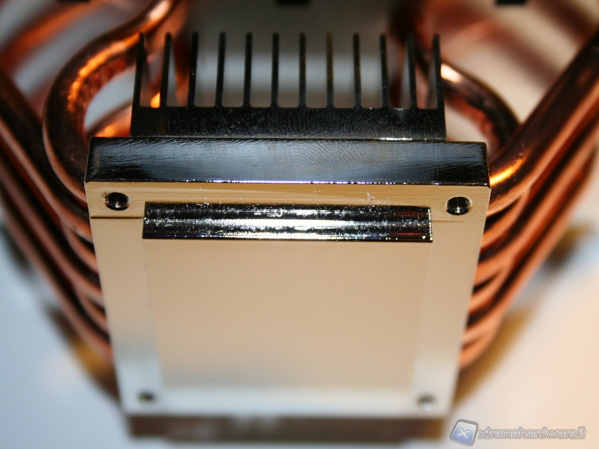 The thickness of the fins, the number and quality of heat-pipes, and the finish are good. Concerning the contact base, although there are some signs of the turning process (a factor that still does not significantly affect the performance of this unit), the surface is polished. The base is always a good indicator of the quality of the heatsink itself and here we can say that we are fully satisfied. The nickel plating does not present extraordinary finish, but at the same time turns out to be really good. Very positive, characteristic of most Scythe products, is the finish of the heat pipe which are equipped with an aluminum nickel-plated cap in order to hide the bare heat-pipes termination: this undoubtedly gives a much more professional aspect to the product.