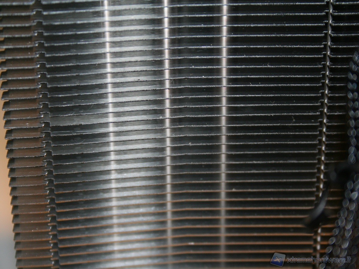 By analyzing the arrangement of heat pipes itself through the radiant body, we see that they are not placed on the same line but in staggered blocks of 2. This will allow optimum ventilation of the heat-pipes itself, which would not have been possible if they were parallel. Surely, several studies have been carried out in the field of heat dissipation, and we believe that the MAPS system is really interesting, though perhaps not suitable for fanless configurations, because, as it is conceived, it is essential that there is a constant air flow. As evidence of this, just think about the values ​​of the fan itself, about which we report technical specifications: