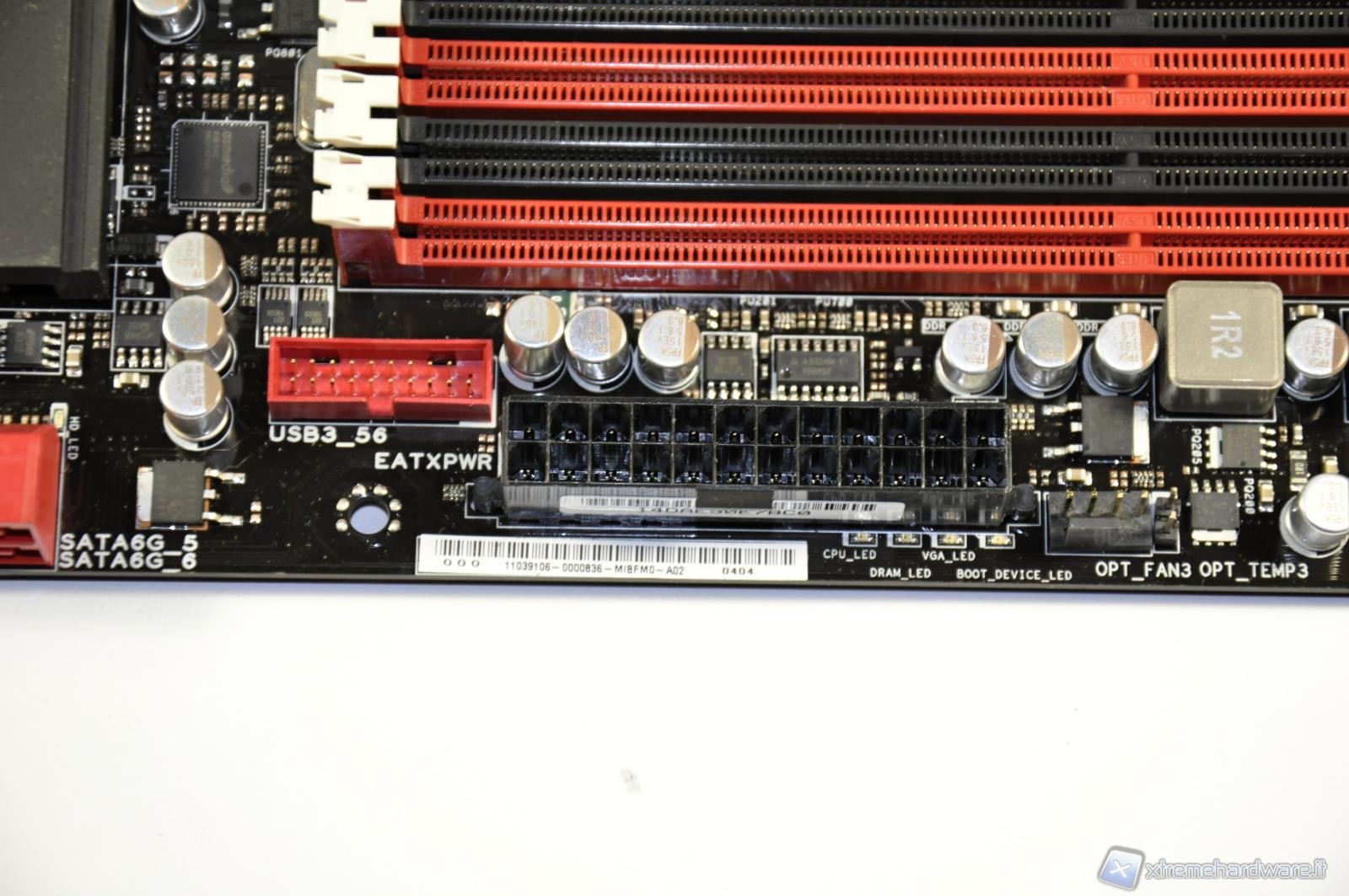 On the left of EATX Power 24-pin connector, in red there is the connector dedicated to the replication on the chassis of the USB 3.0 ports.