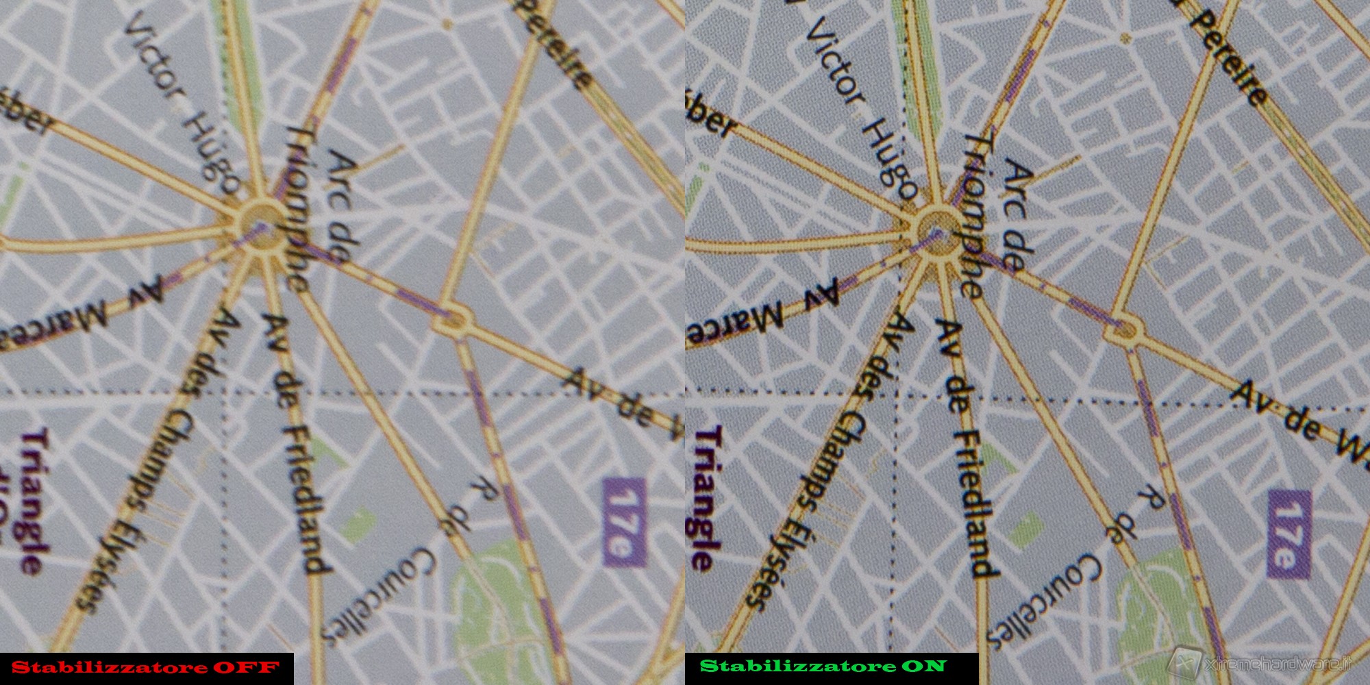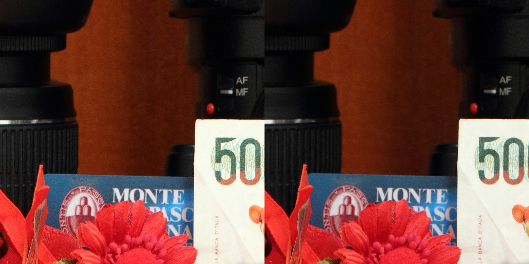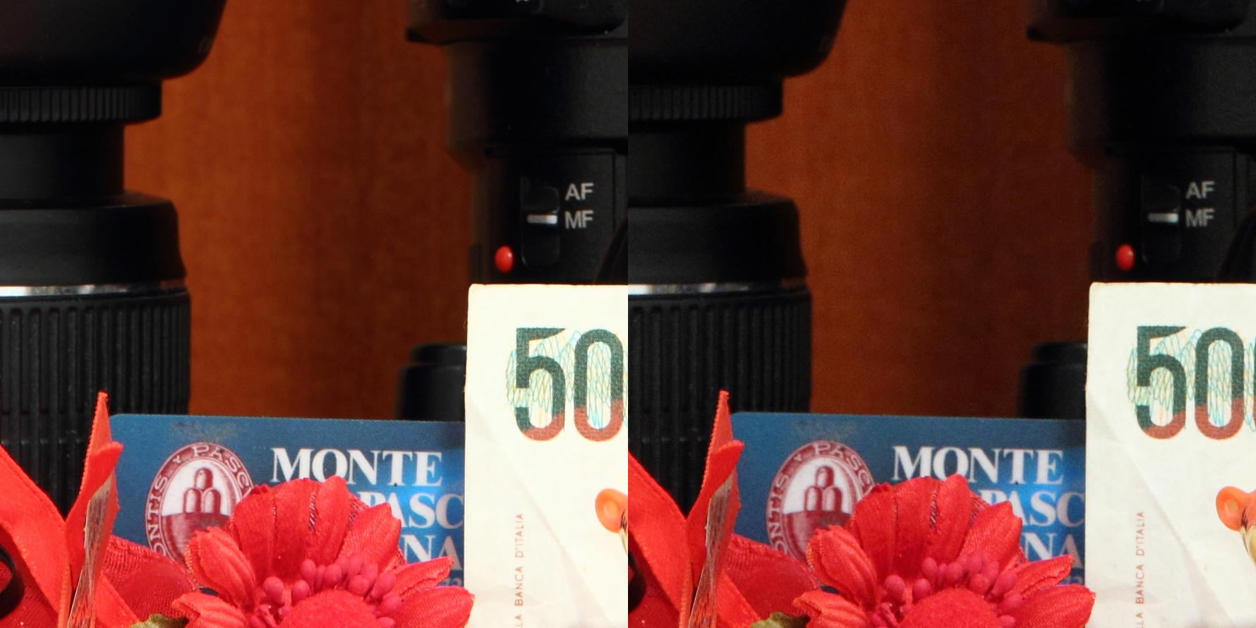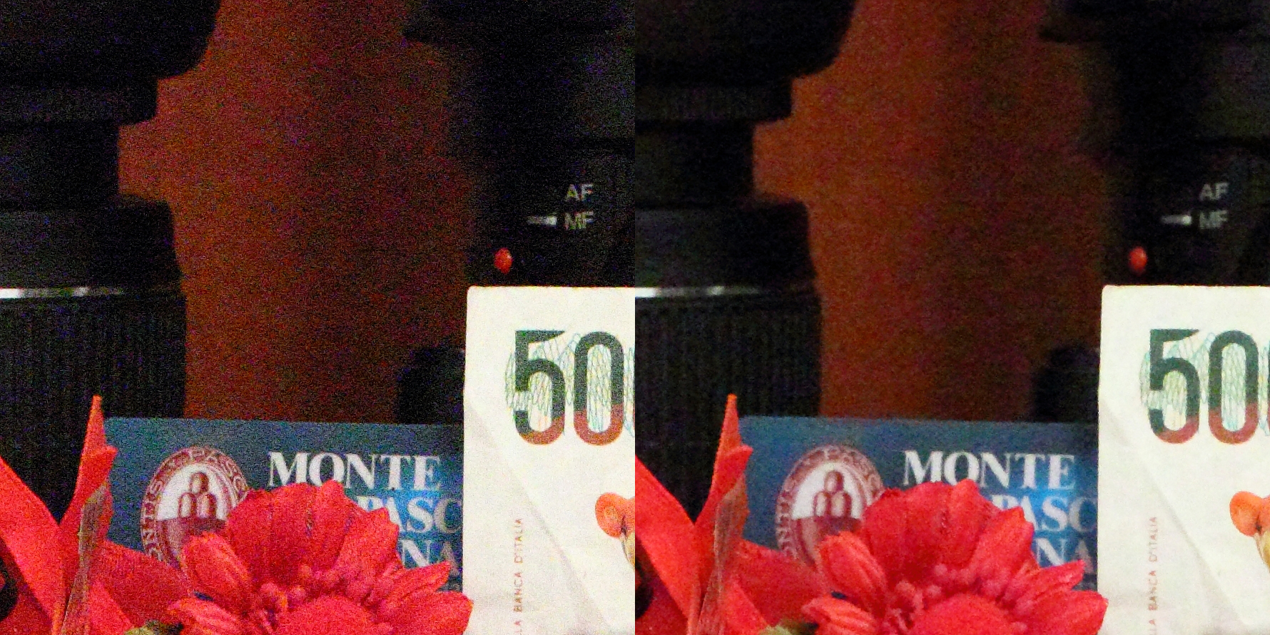 Lo stabilizzatore ottico d’immagine presente su questo prodotto è, secondo Canon, capace di compensare 4 stop. Durante i nostri test è stato in grado di comportarsi egregiamente, ma ne sconsigliamo l’utilizzo al limite delle sue possibilità durante l’utilizzo “sul campo”. I fattori che entrano in gioco in quei momenti non rendono infatti il meccanismo molto affidabile. Come ogni stabilizzatore delle ottiche di Canon di fascia media di ultima generazione, anche questo zoom è in grado di percepire se è stato fissato su un cavalletto , e disattivare di conseguenza lo stabilizzatore ottico. E’ presente anche la rilevazione automatica del panning (in tal caso la stabilizzazione viene implementata sul solo asse verticale). L’immagine sotto rappresenta un confronto tra due scatti effettuati in rapida successione, con le stesse impostazioni, tranne che per la stabilizzazione ottica.