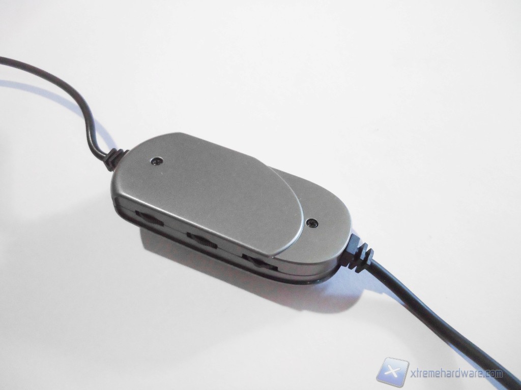 Passando al telecomando a filo lo troviamo molto leggero; è in materiale plastico di colore grigio e presenta un LED di funzionamento al centro del corpo.