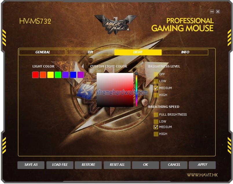 Seppur l’HAVIT HV-MS732 è un mouse di fascia bassa/economica viene fornito un software di gestione che ci permetterà di agire sui maggiori parametri ed impostazioni del mouse. Come visto nel bundle troveremo un Mini CD-ROM ma potremo sempre prelevare il software dal sito di HAVIT.