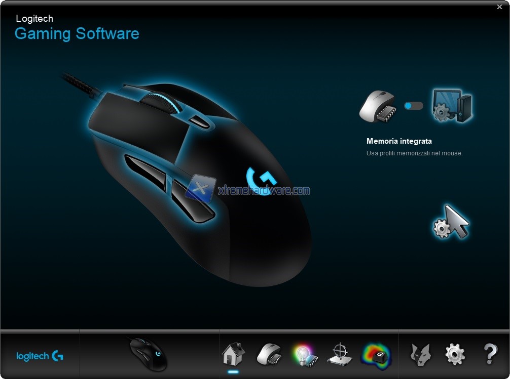 La prima icona ci mostra la panoramica generale del mouse G403 Prodigy. Qui avremo possibilità di decidere se salvare le personalizzazioni direttamente nella memoria On-Board del mouse o sul PC.