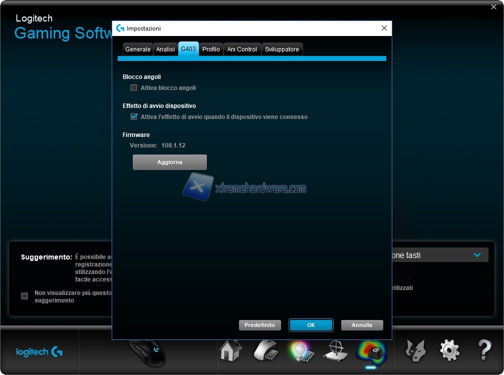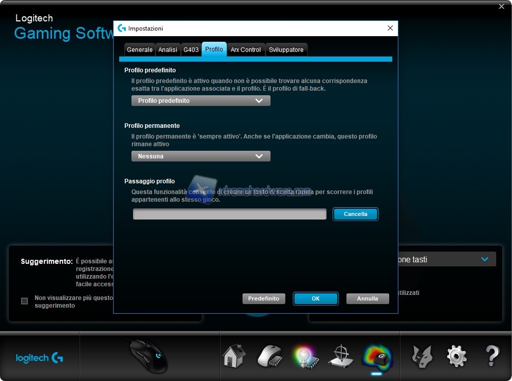 Passiamo velocemente al consueto software di gestione Logitech Gaming Software o come molti lo conoscono LGS. Questa volta lo analizzeremo in relazione al rilevamento del G403 Prodigy connesso.