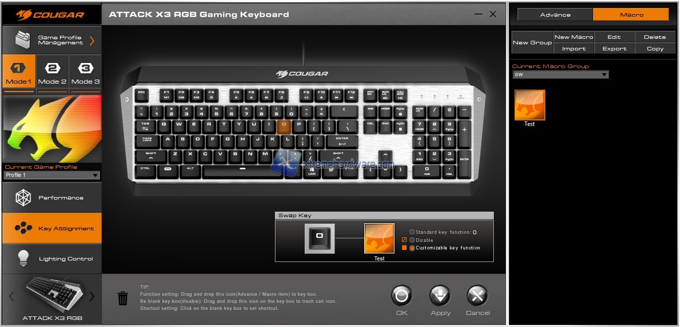 La Cougar Attack X3 RGB così come altre tastiere e mouse della Cougar potrà essere personalizzata fin nel minimo dettaglio tramite il software di gestione Cougar UIX. Software dall’interfaccia semplificata per le principali operazioni ma che cela numerose funzioni e impostazioni di personalizzazione una volta preso confidenza.