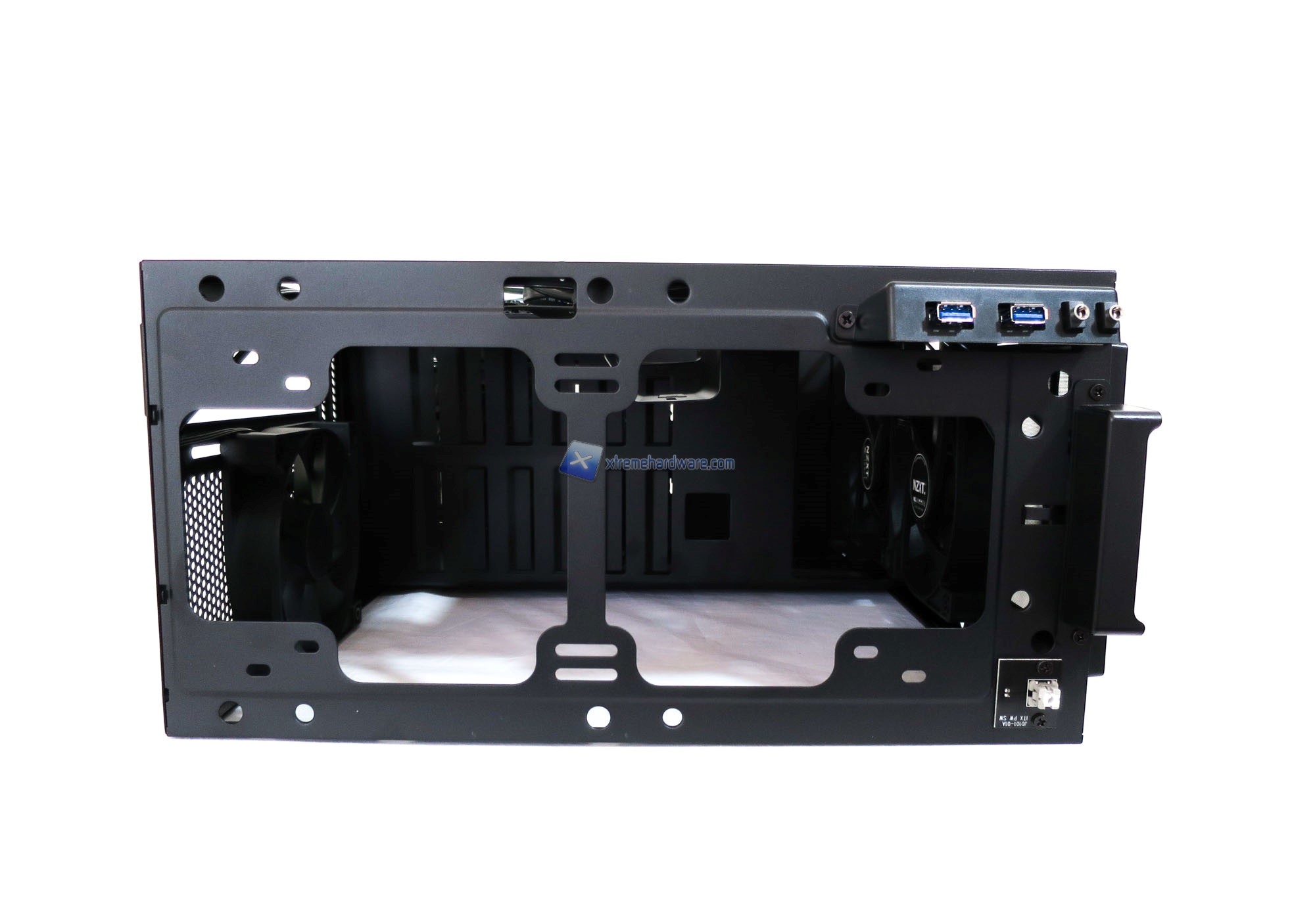 Al solito troviamo nella zona centrale il classico Midplate che separa ottimamente la zona PSU da quella dei componenti principali. Il Midplate è dotato di fori trasversali per un adeguato ricircolo d’aria tra le due ‘’zone’’ nonché di un foro adibito al passaggio dei soli cavi per la VGA.