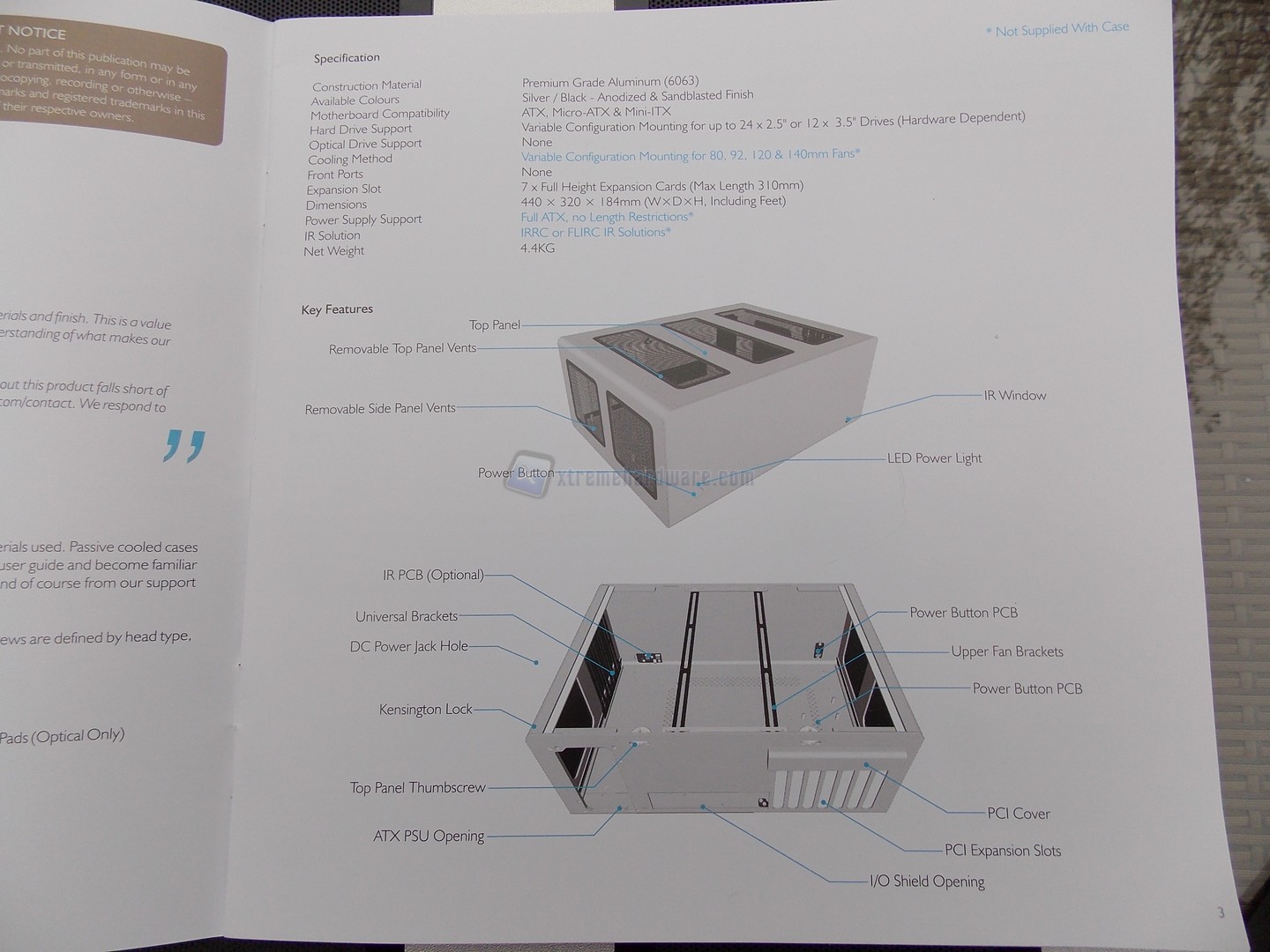 Il bundle in dotazione è elementare ma completo. Non troviamo ventole preinstallate, ragion per cui si comprende subito che dovrà essere riposta attenzione alla dissipazione termica delle componenti interne.