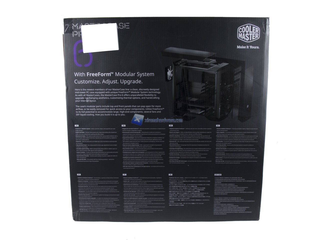 Il Cooler Master MasterCase Pro 6 come per i precedenti modelli della serie MasterCase ci giungerà in una confezione di notevoli dimensioni visto l’imballaggio che troveremo a protezione del case. Non mancano tutte le informazioni principali nonché immagini illustrative del prodotto.