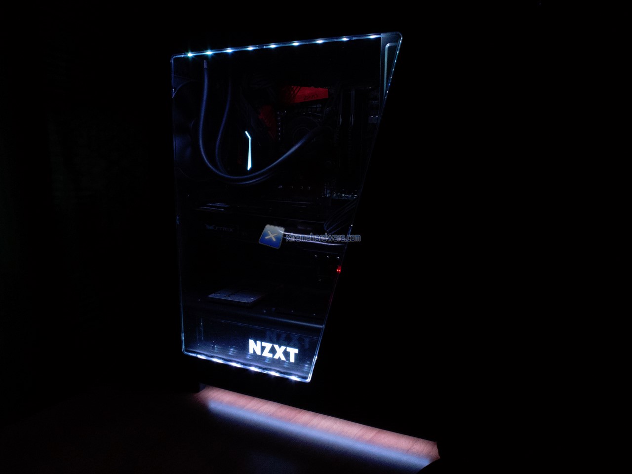 L’installazione della nostra configurazione all’interno del NZXT Noctis 450 ROG Edition è risultata rapida e facile. I numerosi fori che contornano il Tray della scheda madre permetteranno un cablaggio ottimizzato da e verso la scheda madre e relativi componenti quali la scheda video (avente un foro dedicato al passaggio dei cavi).