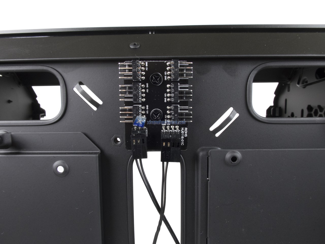 In alto in posizione centrale non sfugge l’HUB a 6 Header per ventole a 3 Pin più i collegamenti dedicati all’illuminazione del case.