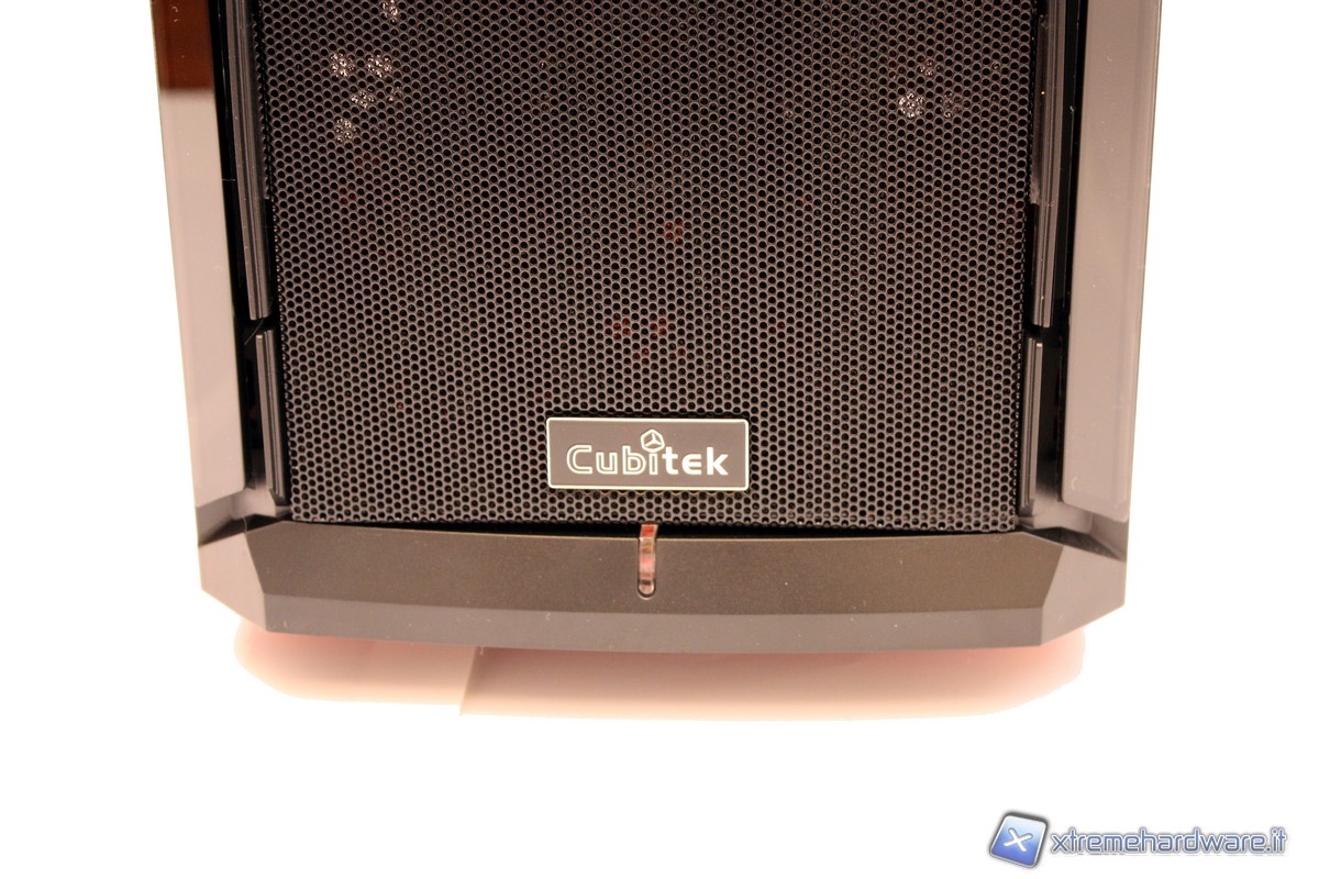 Il frontale è molto elegante e pulito; presenta 5 slot da 5,25" al di sotto dei quali è presente una ventola in immissione da 140mm per il raffreddamento degli HD. La ventola è dotata di LED rossi, per donare riflessi unici durante il funzionamento del PC, ed è munita inoltre di filtro antipolvere, facilmente raggiungibile smontando il pannello frontale con la pressione delle dita.