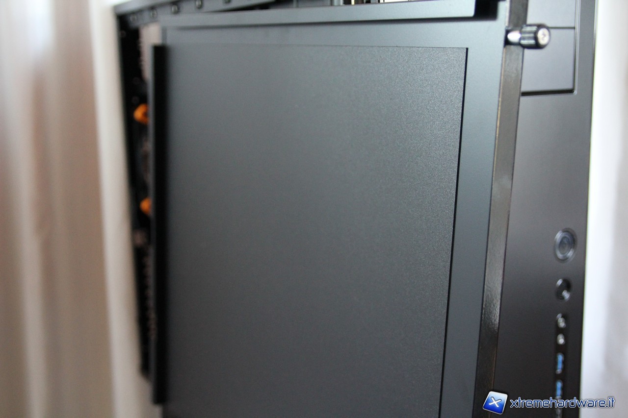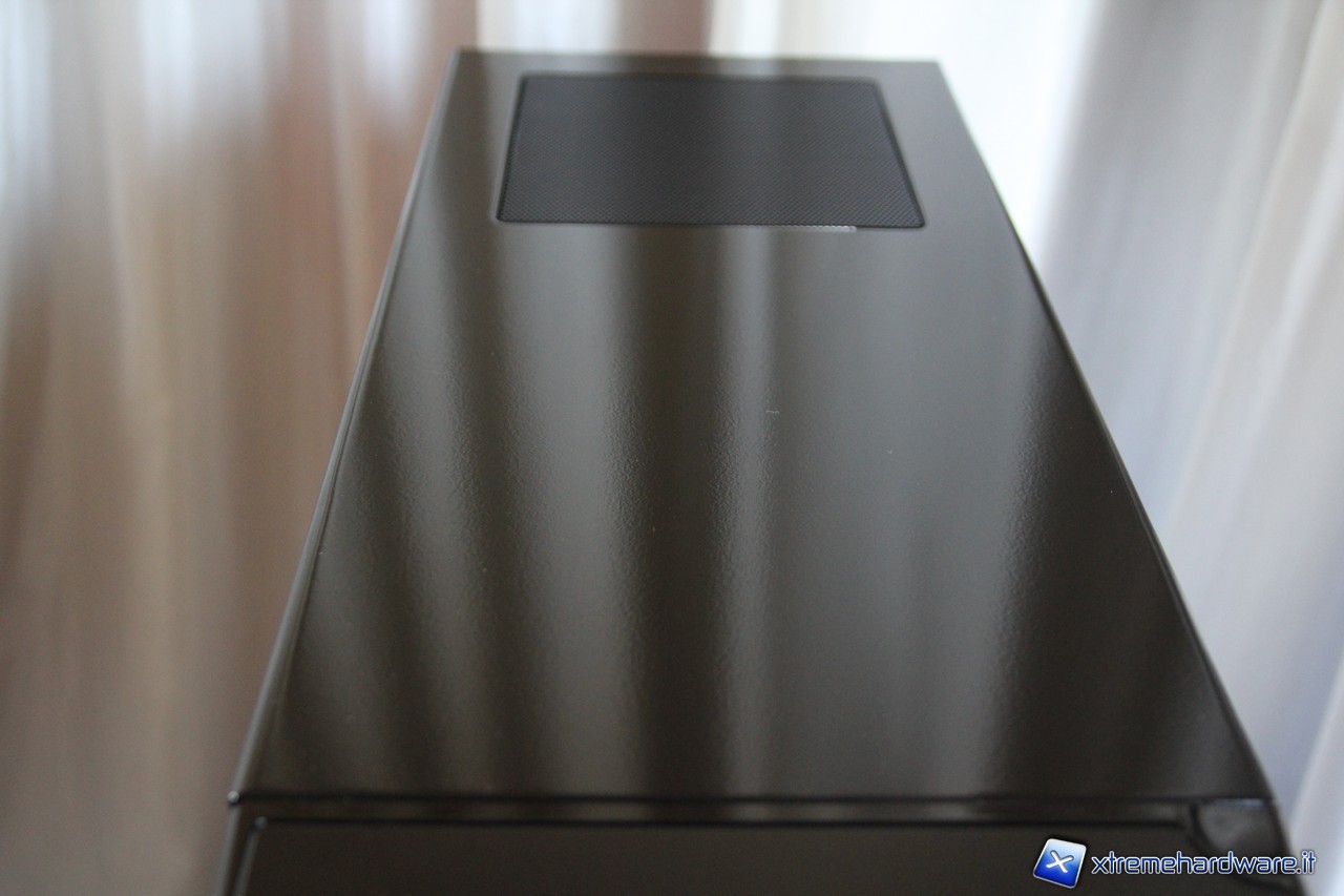 Il pannello superiore insieme ai pannelli laterali è costruito in SECC dallo spessore di un millimetro e policarbonato. Tutti i pannelli sono formati da due fogli di acciaio, in mezzo ai quali è stato inserito un foglio di policarbonato: questa geniale soluzione permetterà di ridurre drasticamente il rumore prodotto dai componenti installati all'interno del case.
