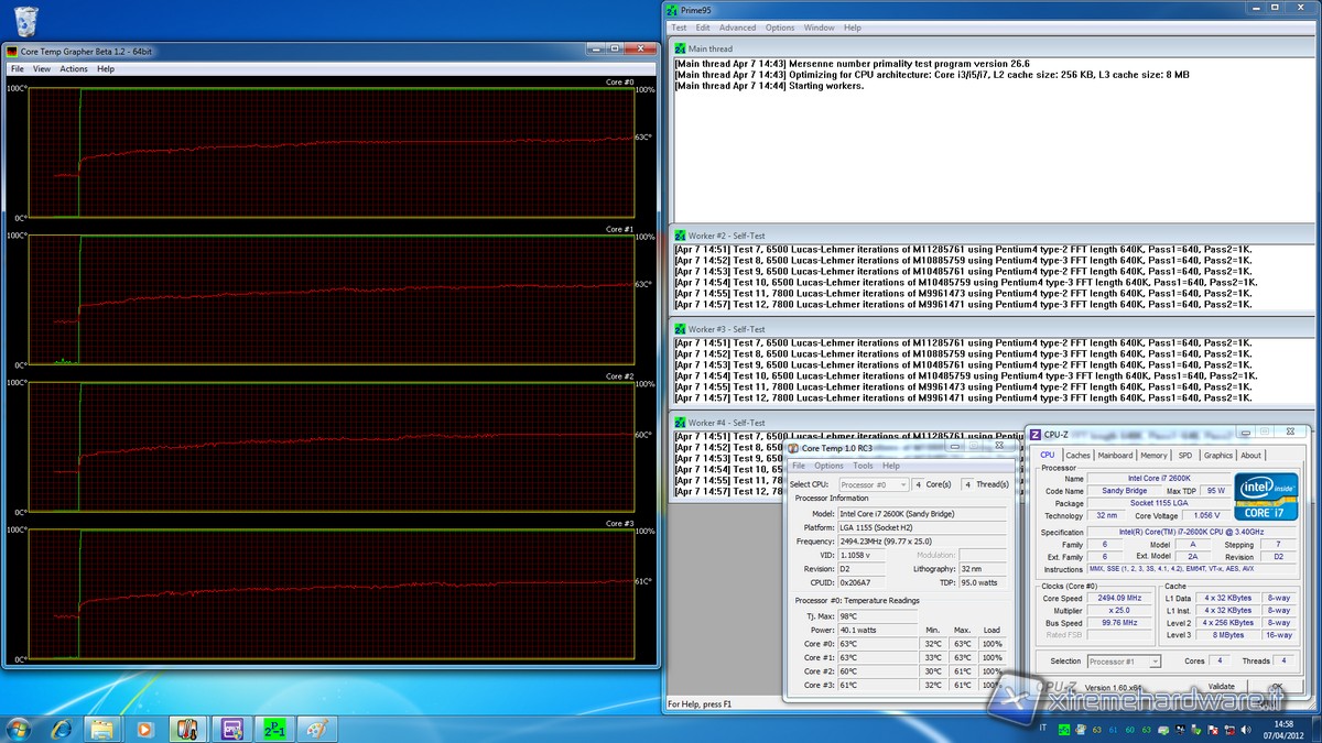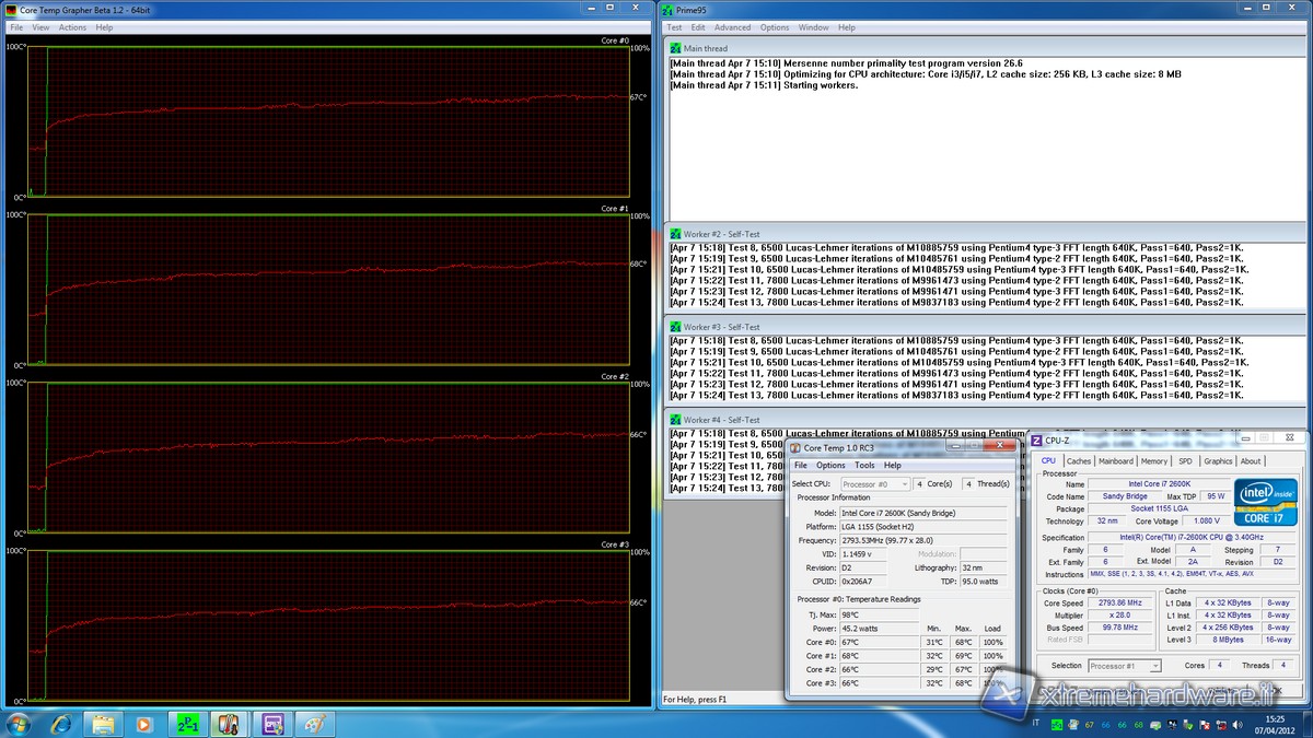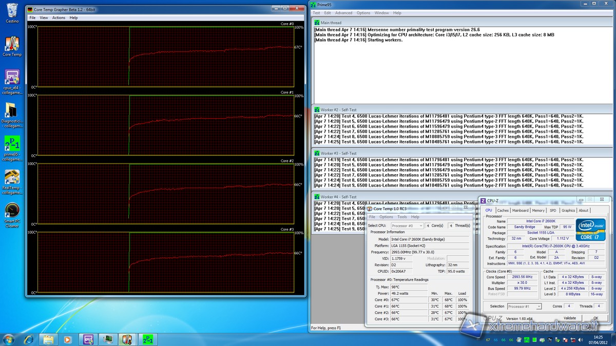 Una volta fermato il test con Prime95 occorono più di 10 min. affinchè le temperature tornino in una situazione di norma, rispetto quindi al caso precedente un tempo circa doppio.