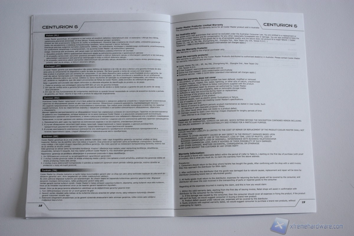 Andiamo ora ad anlizzare il manuale fornito con il Cooler Master Centurion 6: