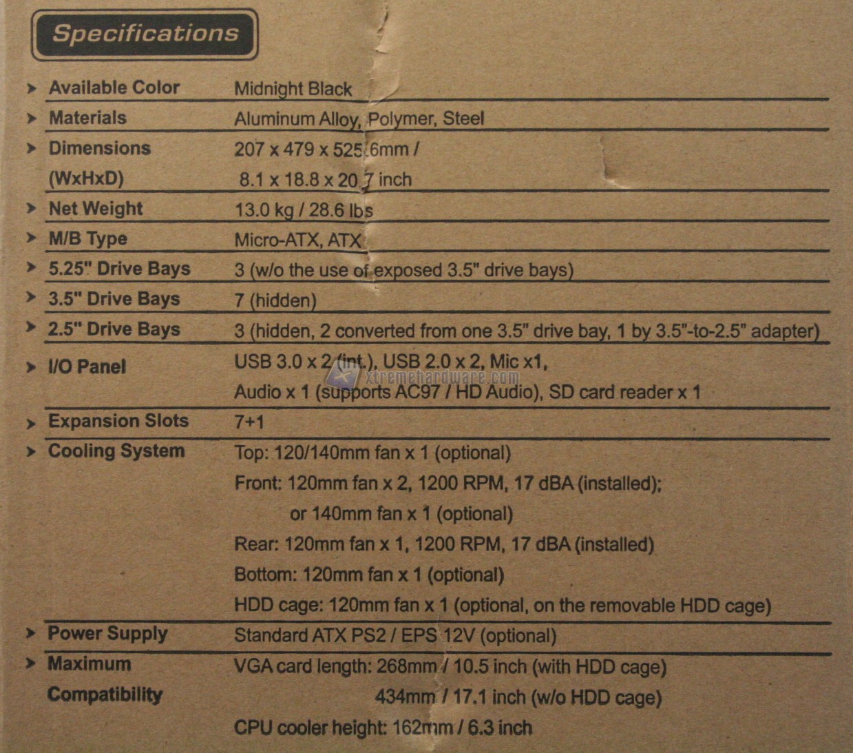 La confezione è classica Cooler Master quindi un confezionamento esterno di cartone, con molte informazioni tecniche. È scarno ma essenziale, d’altronde non vi è necessità di fare altrimenti. Il case è inserito all’interno della classica bustina di plastica antigraffio ed è protetto lateralmente da due frame di polistirolo. Sarebbe consigliabile utilizzare fustellati di polietilene espanso, ma tant`è.
