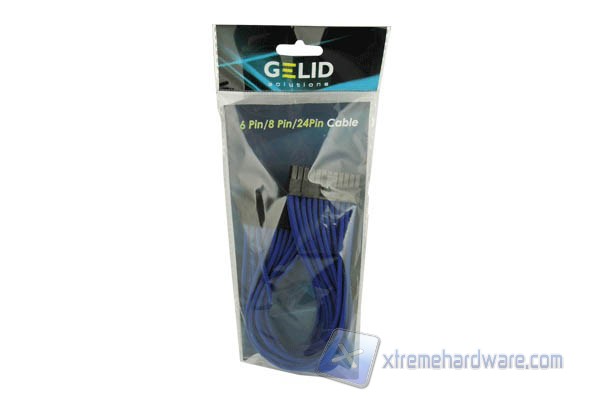 Le prolunghe sono alloggiate in sacchetti di plastica trasparente in modo da poter essere osservate dai futuri acquirenti. Inoltre frontalmente vediamo che il cartoncino sottostante riporta i 3 modelli disponibili di prolunghe prodotti da Gelid, che sono per l’appunto il 24 pin EPS, 8 pin EPS e 6 pin PCI-E. Nella parte posteriore invece troviamo alcune caratteristiche del prodotto ed inoltre viene riportato quale modello è incluso nella confezione.