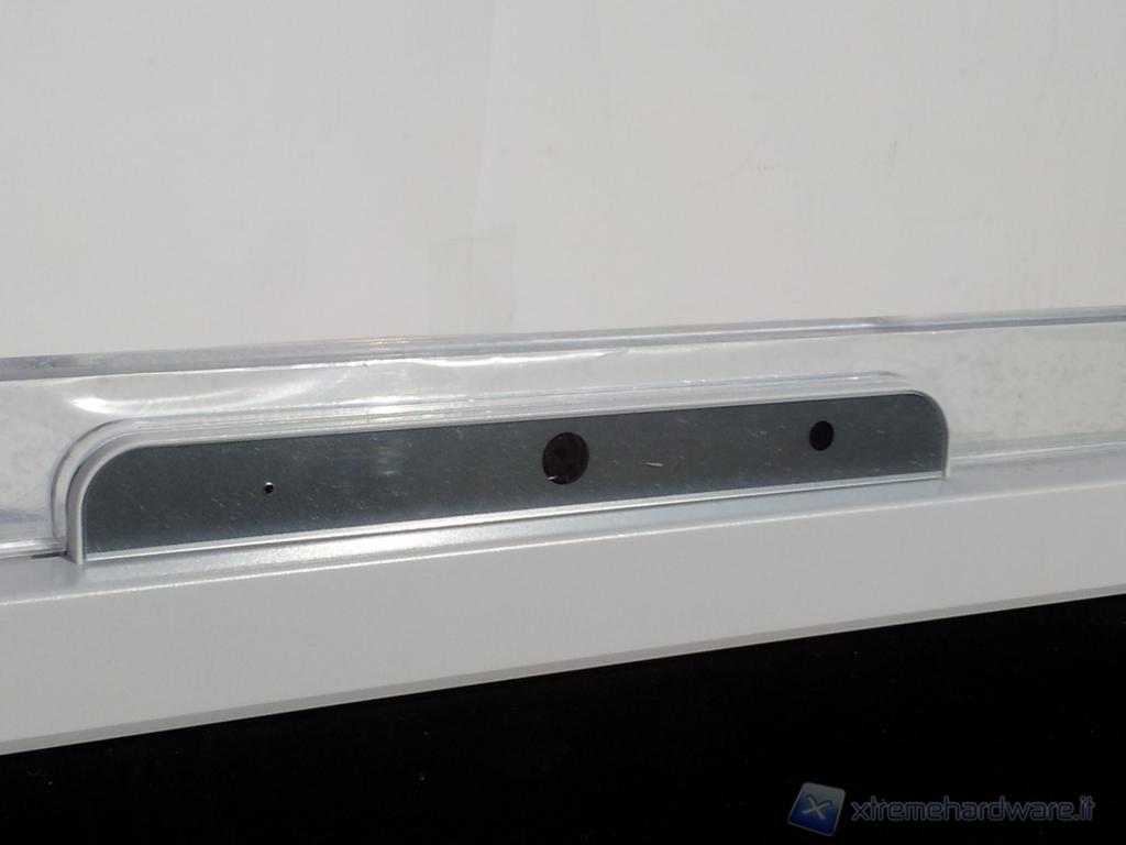 Nella parte frontale salta subito all'occhio il pannello LCD da 20" lucido con risoluzione 1600x900, inferiore quindi allo standard Full-HD. Come già detto il pannello supporta la tecnologia Multi-touch, sarà quindi possibile utilizzare il PC anche attraverso l'ausilio delle sole dita.