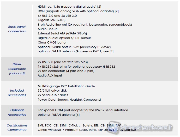 Come abbiamo già avuto modo di capire, le specifiche tecniche di questo sistema mini PC prodotto da Shuttle si attestano su ottimi livelli qualitativi, disponendo di una ricca dotazione di interfacce. Per semplicità riportiamo gli schemi tecnici che riassumono le caratteristiche:
