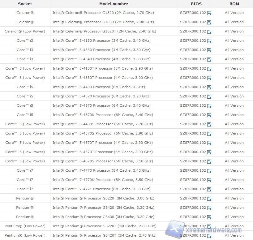 Per concludere vi postiamo la lista delle CPU supportate: