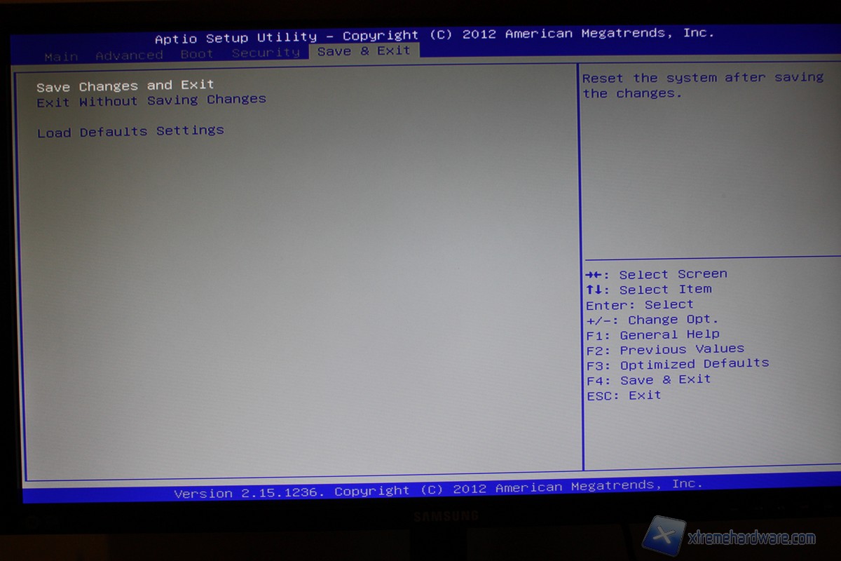 Infine l’ultimo menù chiamato Save & Exit ci permetterà di salvare tutte le impostazioni o meno che abbiamo modificato o di ricaricare facilmente i parametri base del BIOS tramite la voce Load Default Settings.