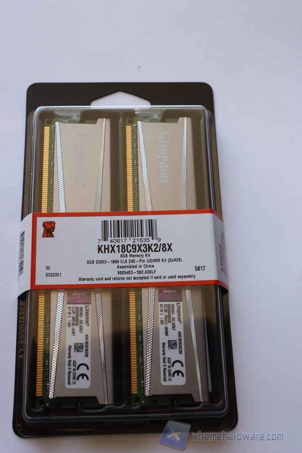 Il kit Kingston è inserito in una confezione che risulta trasparente nella sua parte superiore, lasciando intravedere i moduli. Nella parte frontale sono inoltre riportate le informazioni nonché il codice prodotto del kit.