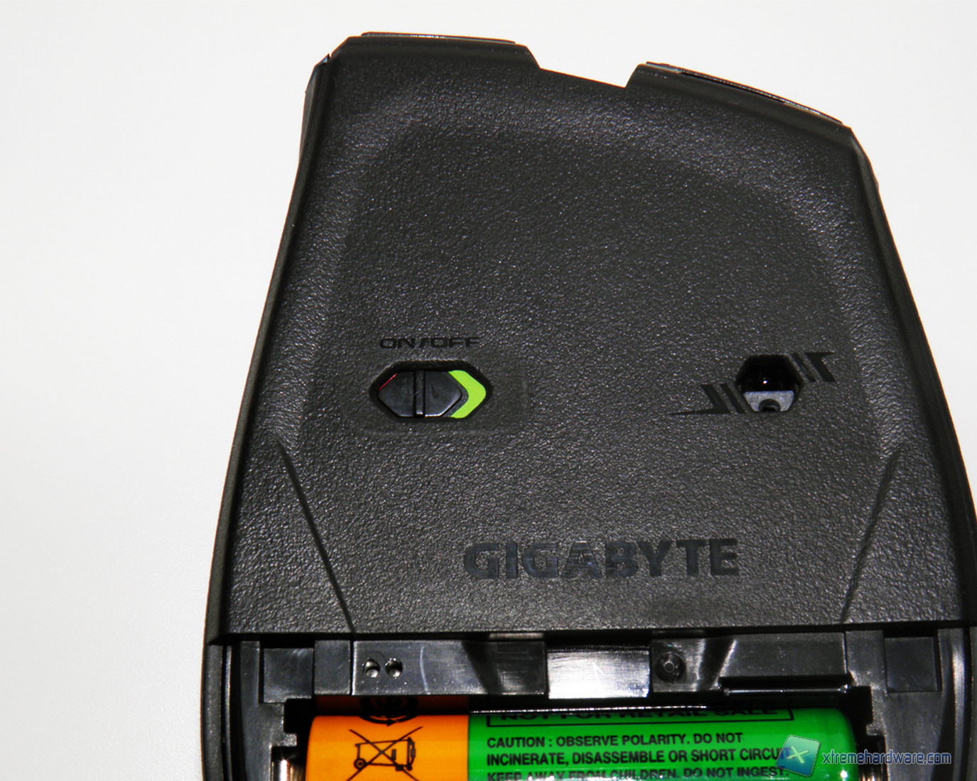 Il vano batteria è nella parte inferiore del mouse, una linguetta permette la facile estrazione della batteria una volta inserita, inoltre, è possibile riporre il ricevitore wireless all'interno del mouse.