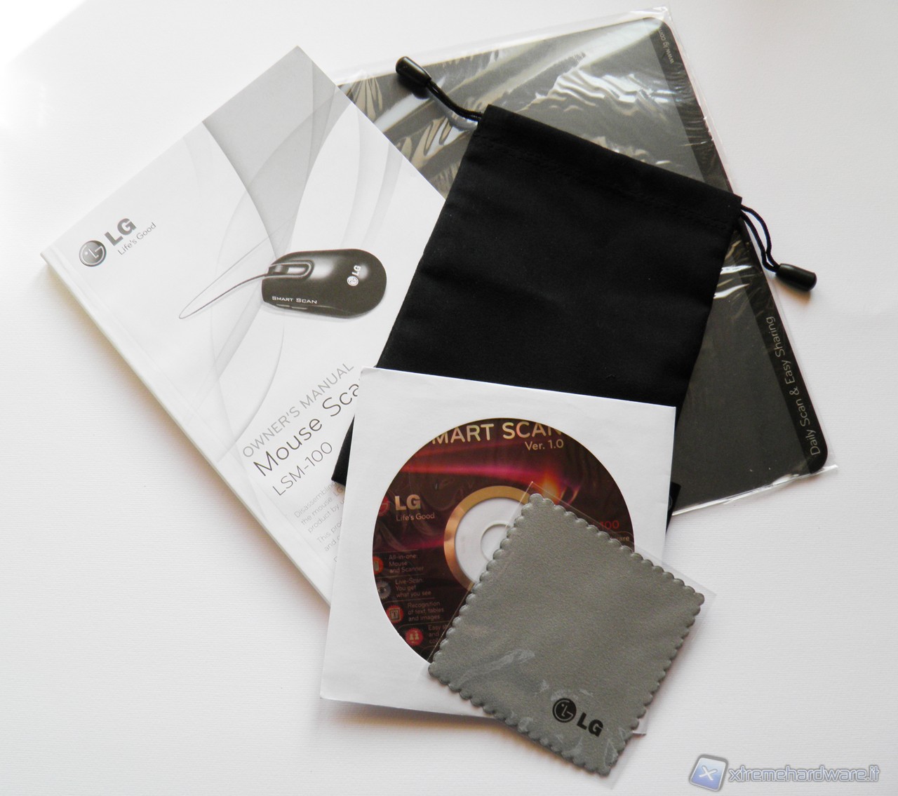 Il bundle a corredo del mouse è davvero generoso. Troveremo infatti, oltre ai manuali di utilizzo (con italiano incluso), anche un tappetino per il mouse che ci permetterà anche di scansionare tessere, un sacchettino protettivo dove riporlo, un panno per pulire il mouse, il CD con il software e il driver.
