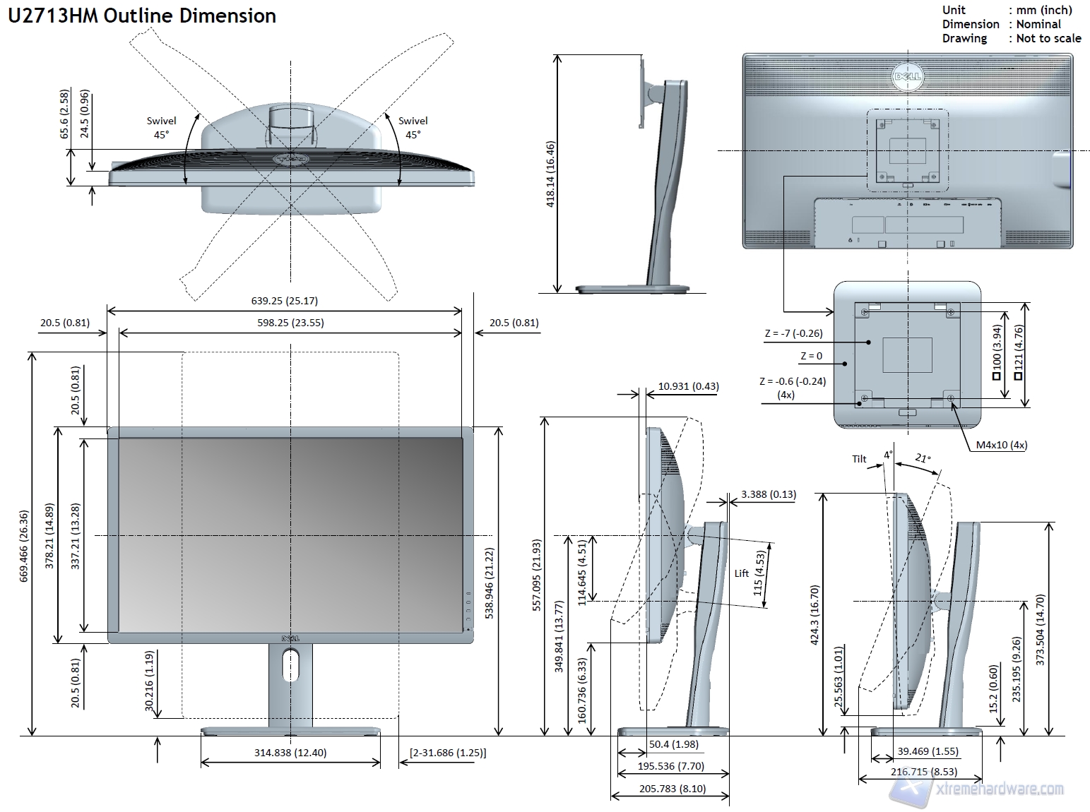 Per conoscere in dettaglio le dimensioni del monitor, Dell propone in un file PDF tutte le informazioni necessarie.