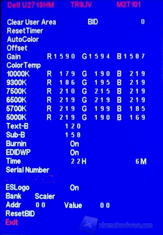 Con i quattro ingressi video più utilizzati, complete regolazioni e l’hub USB, il Dell U2713HM offre una più che buona ergonomia; mancano degli speaker integrati, ma la casa propone, opzionalmente, la barra audio AX510 o AX510PA. Il pannello utilizzato è un AH-IPS LM270WQ1-SLB2 di produzione LG Display, con colour depth 8-bit reali e retroilluminato con W-LED. Di seguito riportiamo lo screen del menù service.
