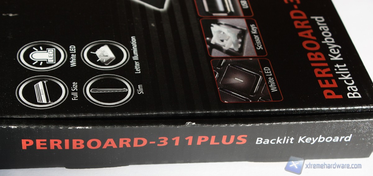 Nella parte posteriore troviamo un’altra immagine della tastiera, questa volta accompagnata dalle dimensioni e dall’elenco completo delle features della Perixx Periboard 311 Plus, tra cui il meccanismo dei tasti Scissor e la pesenza di HUB USB integrato. Non mancano informazioni relative alla compatibilità del prodotto con i piùrecenti sistemi operativi, l’interfaccia USB Plug n Play che ci consentirà di utilizzare la tastiera senza l'ausilio di software o driver dedicati. Inoltre èriportato il layout della tastiera che è IT, ovvero italiano.