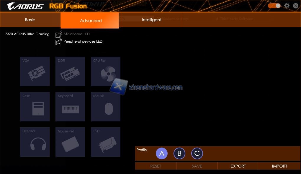 Ora una volta avviato il vero e proprio software RGB Fusion saremo accolti da una schermata di davvero facile e immediata comprensione. Si basa su tre Menù principali che sono ‘’Basic’’, ‘’Advanced’’ e ‘’Intelligent’’.