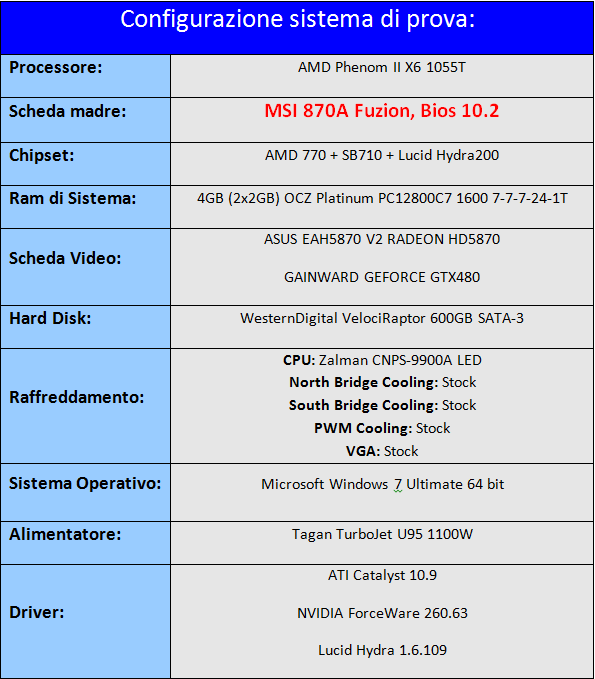 Nella tabella che segue vi mostriamo il sistema di prova utilizzato per i test di questa scheda madre: