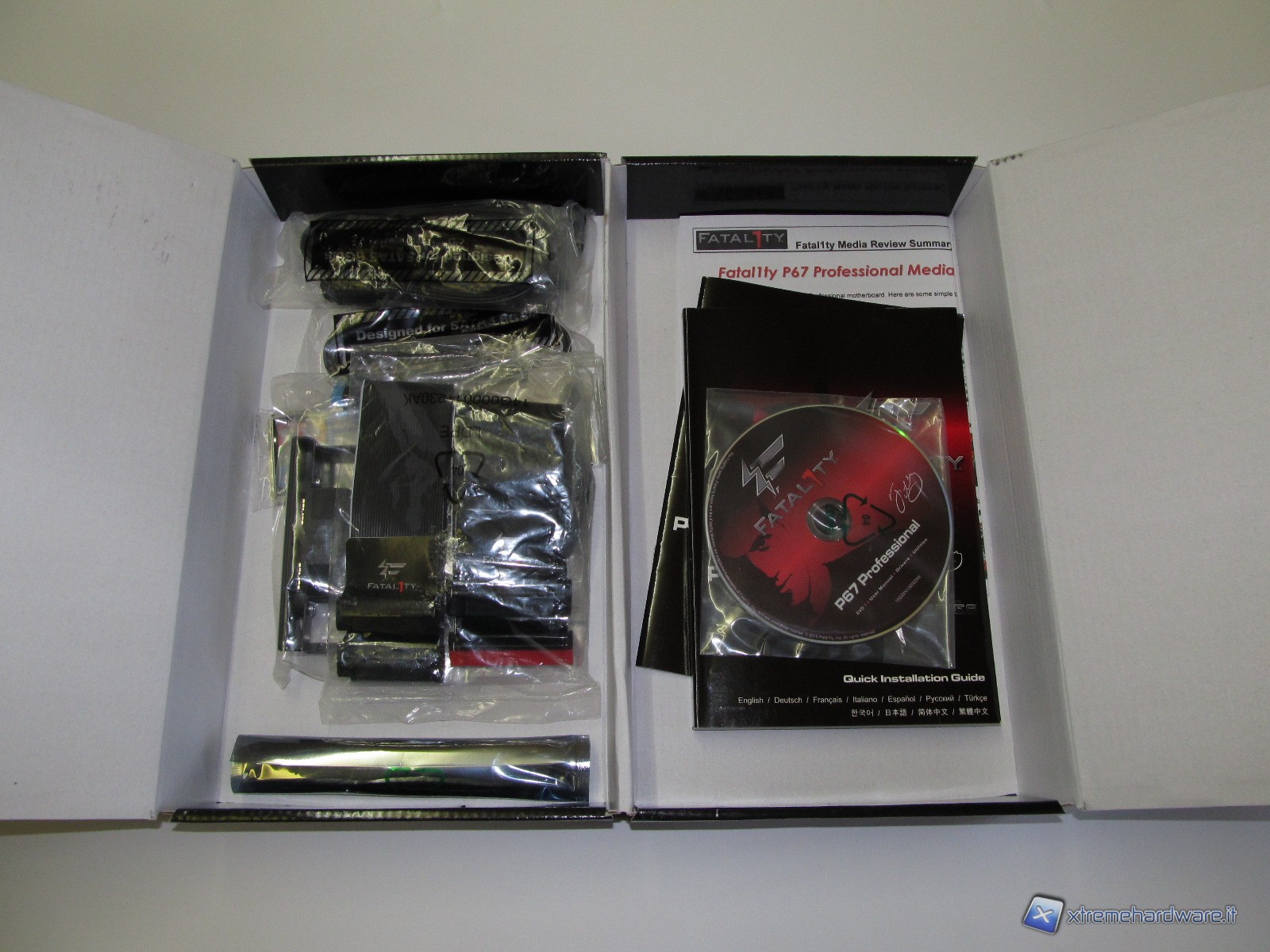 La scheda madre si presenta con il logo Fatal1ty (e l’immagine del notissimo videogiocatore) sulla parte frontale della scatola, mentre nel retro possiamo ricavare una descrizione dettagliata di gran parte delle caratteristiche della scheda madre stessa. Al suo interno invece, troviamo una breve storia riguardante le origini del marchio Fatal1ty con ulteriori descrizioni tecniche, quindi possiamo intravedere la scheda madre stessa.