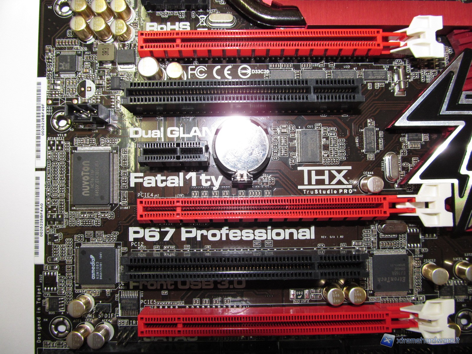 Una volta scartato il tutto possiamo vedere la scheda madre nella sua interezza, e le sue dimensioni che corrispondono al classico standard ATX (30.5 cm x 24.4 cm). A questo punto poniamo la lente di ingrandimento nella zona socket (LGA 1155) dove possiamo immediatamente vedere il sistema CCO che ci consente di utilizzare anche i sistemi di dissipazione per l’obsoleto socket LGA 775, i condensatori placcati oro e l’imponente sistema di dissipazione dei mosfet. Infine risultano molto belli i loghi Fatal1ty a corollario del sistema di dissipazione stesso.
