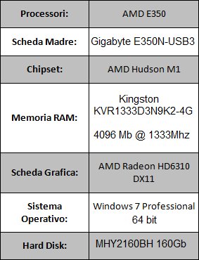 Per questa prova è stata utilizzata la seguente configurazione hardware: